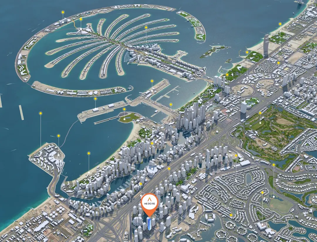 Me Do Re es una torre residencial de última generación en Jumeirah Lakes Towers, una de las comunidades waterfront más consolidadas de Dubai. El proyecto combina tecnología smart, diseño elegante y acabados premium en una ubicación privilegiada frente al lago.