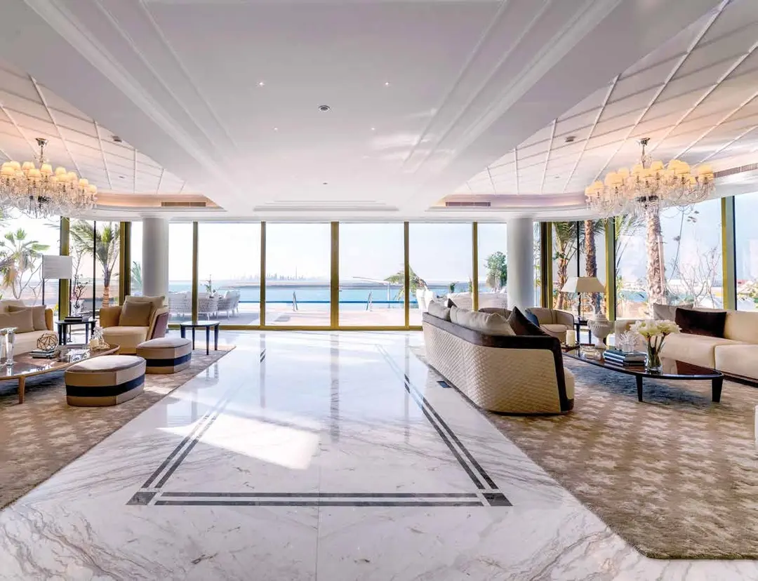 Las residencias de 7 plantas incluyen 7 dormitorios, sauna, snow room, gran salón de recepción con muro de cristal panorámico, y una Viking Sky Terrace con vistas al mar y las islas. Cada propiedad cuenta con playa privada de arena blanca y jardines exóticos.