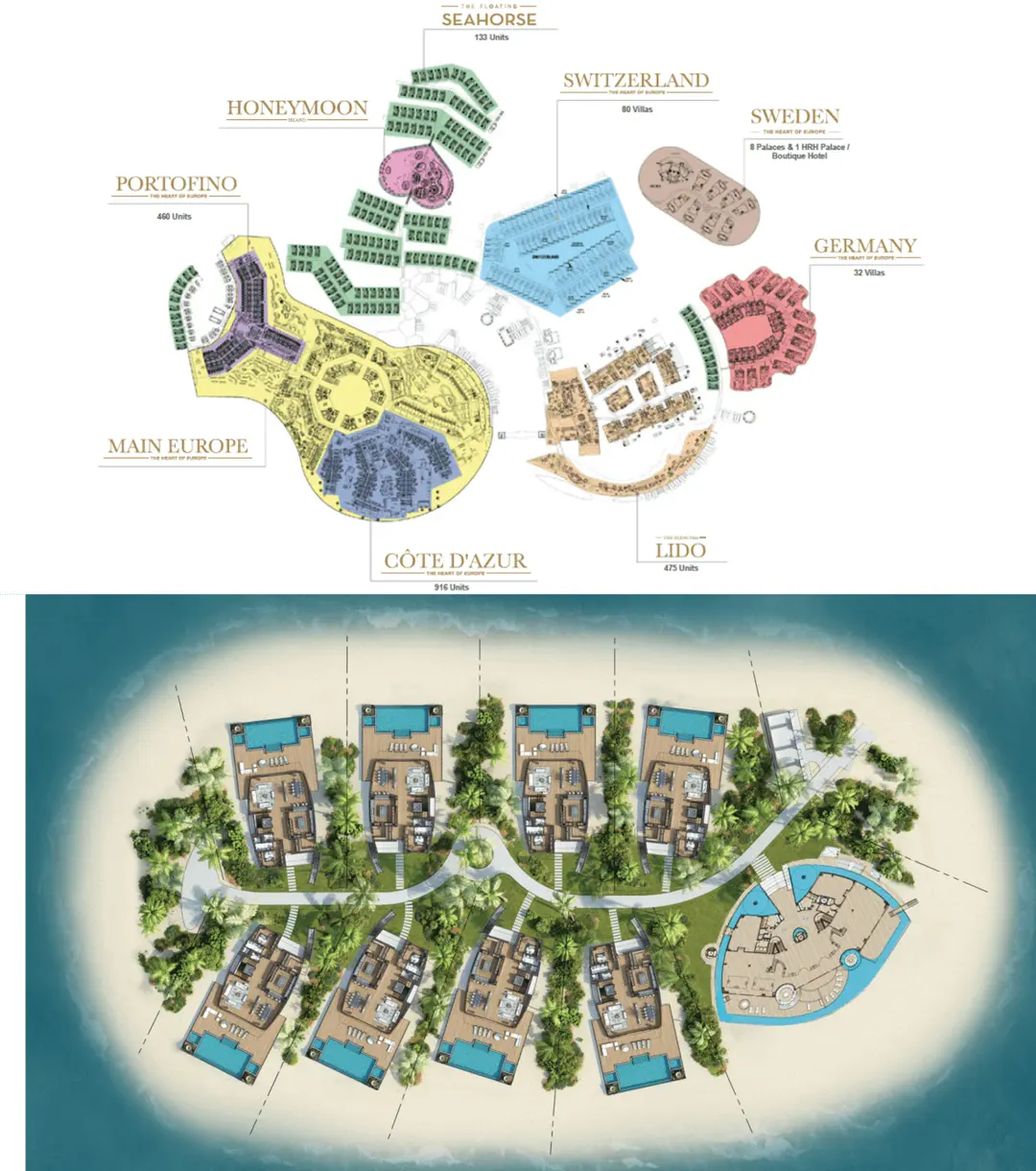 Sweden Island es una de las propuestas residenciales más exclusivas del planeta: 10 palacios frente al mar en The World Islands, el archipiélago artificial con forma de mapamundi frente a la costa de Dubai.