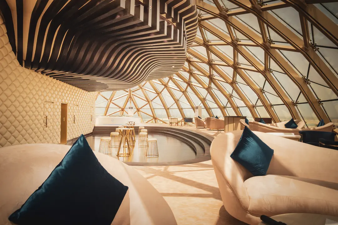 Cada palacio rinde homenaje a la artesanía vikinga sueca, con un espectacular techo de cristal que replica el casco invertido de un barco nórdico. La leyenda cuenta que 10 navíos vikingos se perdieron en el Mar Arábigo buscando nuevas tierras; este proyecto resucita su legado.